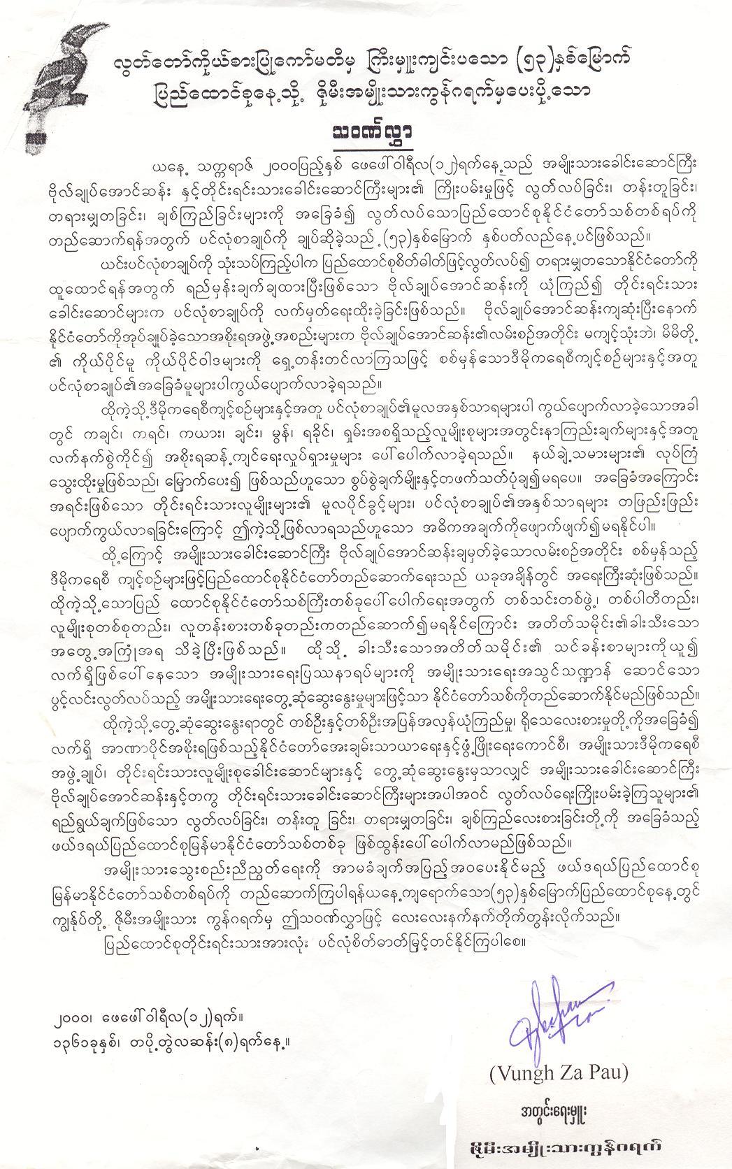 G.secretary), Tg. Vungh Za Pau(ZNC G.Secretary), Sai Nyunt Lwin(Shan Party